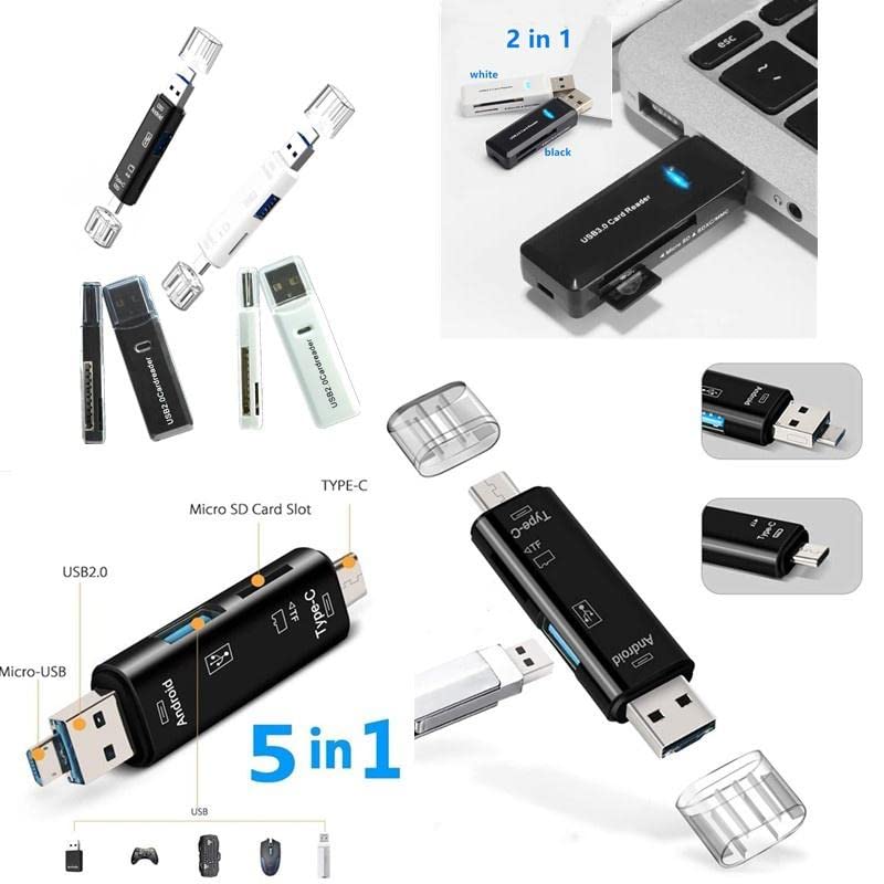 Generic - قارئ بطاقات ذاكرة 5 في 1 متعدد الوظائف USB 2.0 نوع سي/USB/‏Micro USBL/‏TF/SD (لون ابيض)