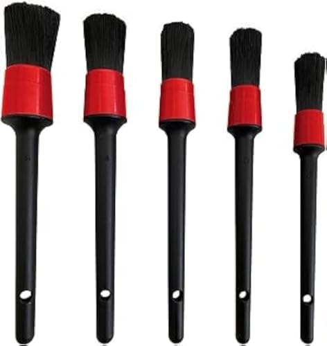 - طقم من 5 فرش لتنظيف الجزء الخارجي الداخلي من السيارة وعجلات السيارة ومحرك التابلوه الجلدي والجزء الداخلي والشعارات وفتحات التهوية والسيارة من ساكار