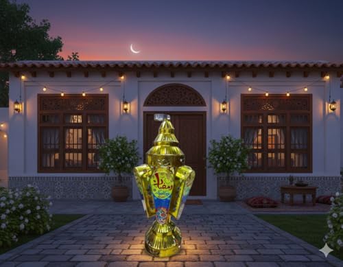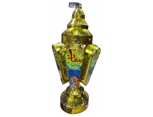 LC - فانوس رمضان معدني 50 سم مع لمبه 7لون مناسب جدا للتتعليق في الشوارات ومداخل العمارات والشقات والملات رمضان كريم (دهبي مع لمبه 7لون)