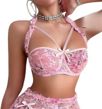 Generic - لانجيري سكسي مثير مطرز بالزهور مزين بفيونكات، قميص نوم قصير أنيق، بيبي دول حريمي شفاف سيجعلك فاتنة من كيان للتجارة، كود 581