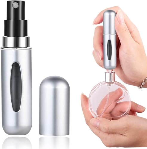 Spaceshoop - زجاجة بخاخ عطر صغيرة محمولة قابلة لاعادة الملء بسعة 5 مل، زجاجة بخاخ عطر للسفر والرحلات (لون فضي)