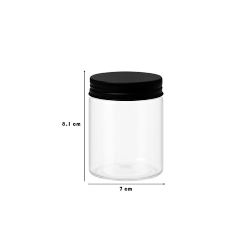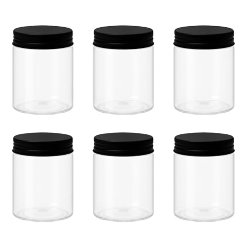 artistic - 6 قطع برطمان بلاستيك لون ابيض شفاف مقاس 300 ملى - قطر 7 سنتي غطاء الوان مختلفة و طبه بلاستيك - فوارغ بلاستيك عالي الجودة صحية لإعادة التعبئة برطمان تخزين - من (فنوني) (اسود مشرشر)
