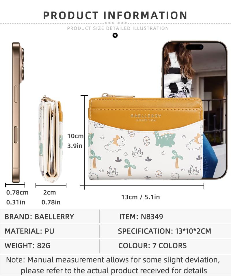 - تصميم عصري وأنيق: محفظة قصيرة للنساء / محفظة صغيرة للنساء بنمط دايناسور وألوان مدمجة تمنحك مظهرًا فريدًا.
