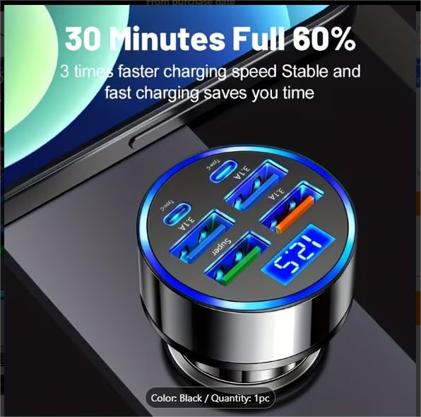 - 6 منافذ شحن متعددة: مزود بمنفذ USB-C واحد و4 منافذ USB عادية لشحن ما يصل إلى 6 أجهزة في وقت واحد داخل السيارة