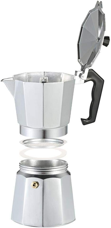 Generic - إبريق تصفية الاسبريسو والقهوة والموكا مصنوع من الالومنيوم مع 6 أكواب يمكن تسخينه على سطح الموقد من لاكي بوي، لون فضي