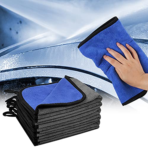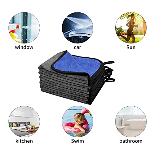 Mikihat - مجموعة فوط تنظيف من المايكروفايبر 6 قطع، قماش تنظيف للسيارات، فوط سميكة لتتنشيف السيارة مكونة من طبقتين، خالية من الوبر وفائقة الامتصاص لاعمال المنزل وتنظيف وتجفيف السيارة (40 × 30 سم)