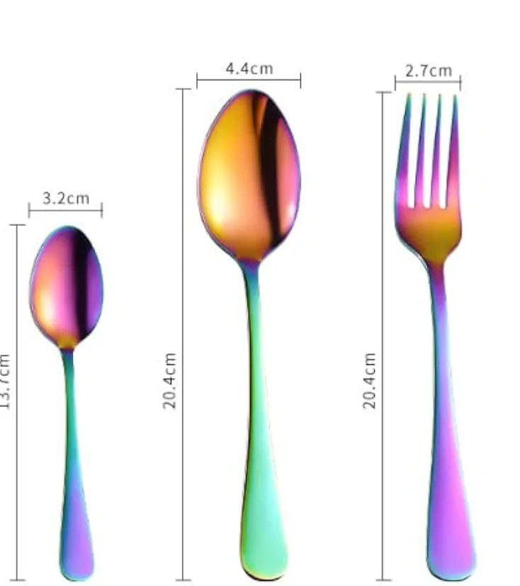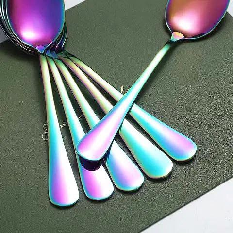 Generic - طقم ملاعق طعام صغيرة وكبيرة بالوان قوس قزح من 6 قطع (6 ملاعق صغيرة)