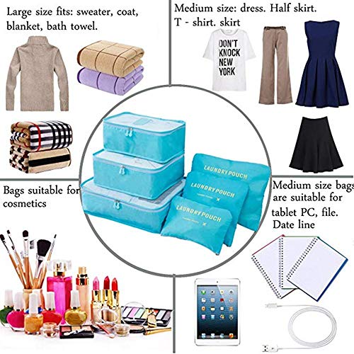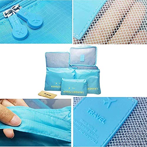 Generic - مجموعة شنط تخزين للسفر مكونة من 6 قطع عبوات فرز الملابس متعددة الوظائف اكياس تغليف ذات فقاعات هوائية البوليستر ازرق