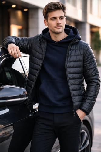 Generic - جاكت رجالى خفيف الوزن جاكيت شتوي دافئ بتصميم عصري-خامه وتر برووف - لون أسود- موديل رقم #: 669