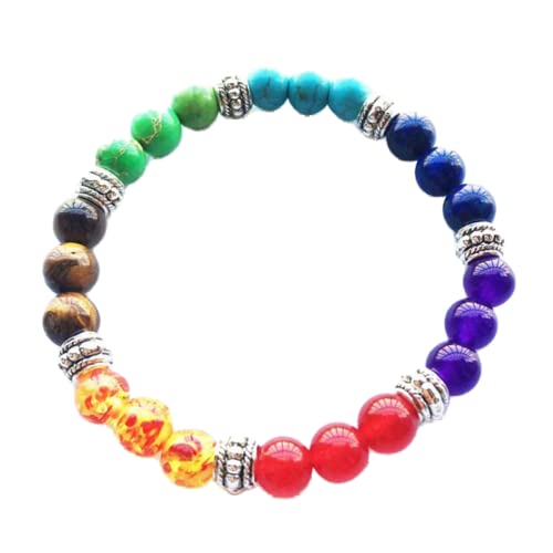 Generic - 7 شاكرا البركانية لافا شفاء سوار فضي للبالغين من الجنسين