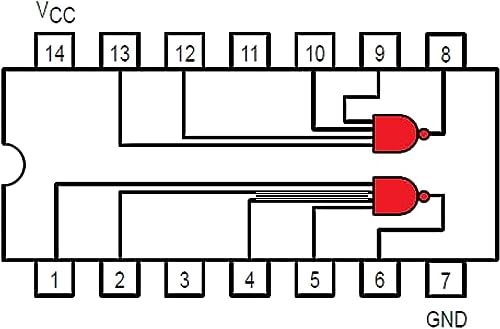 - دائرة متكاملة ببوابة ناند ثنائية من 4 مداخل 7420؛ 7 قطع.