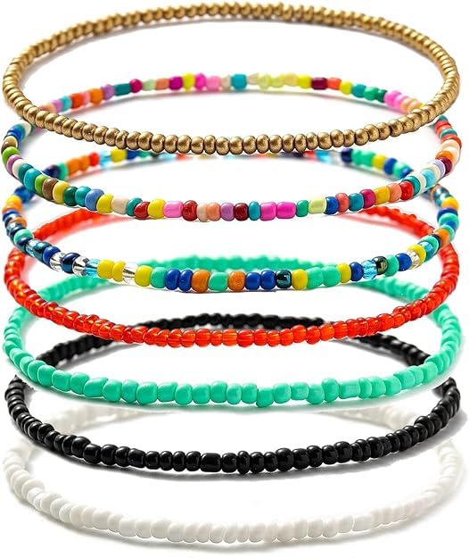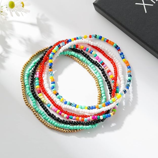 Generic - مجموعة اساور بوهو مطاطية من 7 قطع مصنوعة يدويا للشاطئ للنساء والفتيات | هدية عيد الحب | هدية للنساء | اساور مميزة | سوار بدلاية، المقاس: مقاس واحد