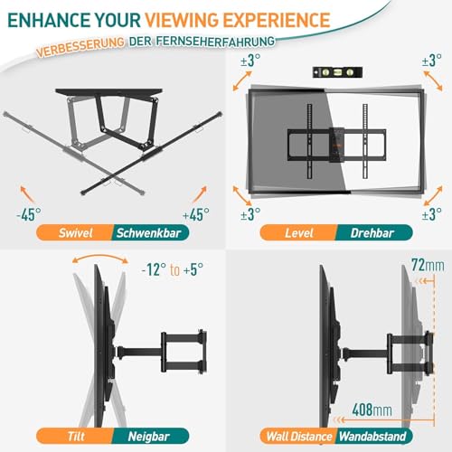 • هيكل قفل آمن - إمالة مريحة - مصنوعة بحرفية رائعة تعديل مستوى سهل مما يجعلها سهلة الاستخدام. يمكنك تمديد التليفزيون الخاص بك (40 سم) من الحائط