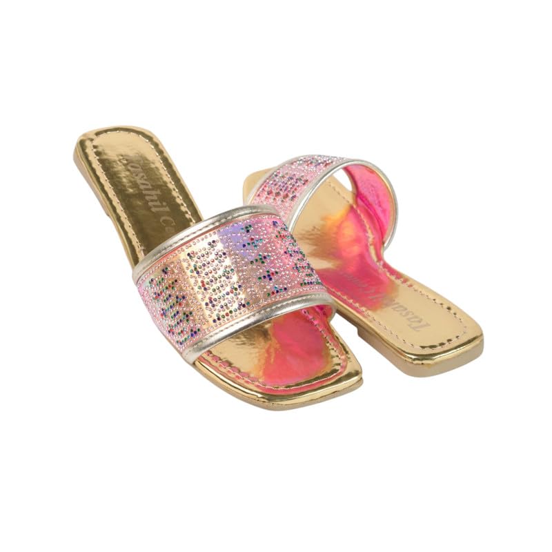 Generic - سليبر حريمى فلات جلد 724 ذهبى 39