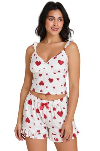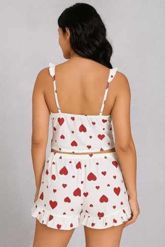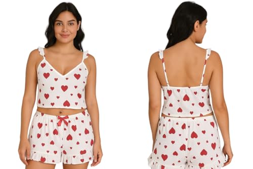 Generic - لانجري بيجامة عصرية للنساء قطعتين أبيض بقلوب حمراء – توب بدون أكمام مع شورت قصير من كيان للتجارة والتوزيع كود 776
