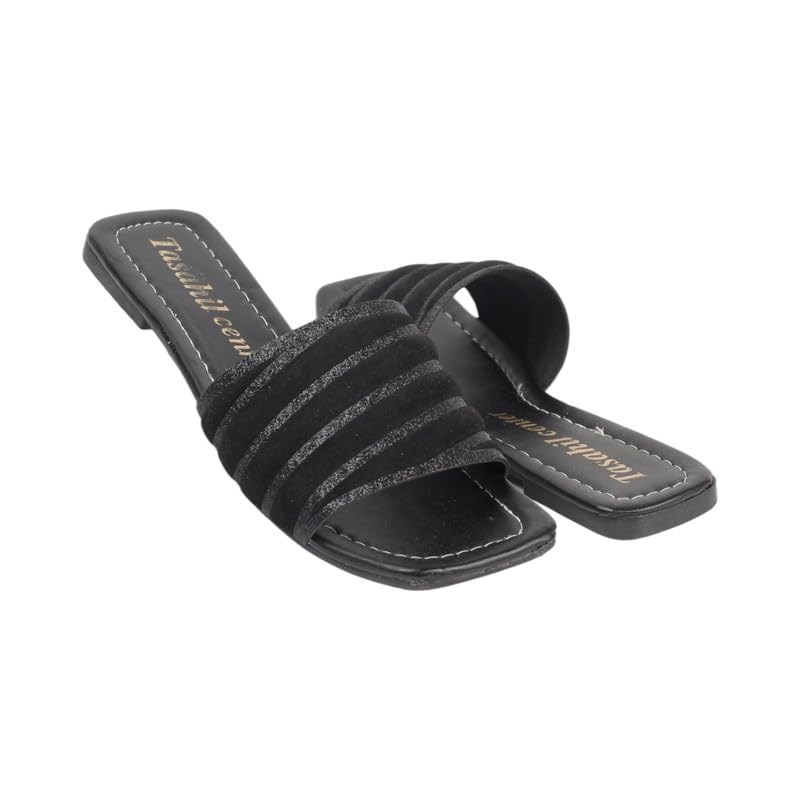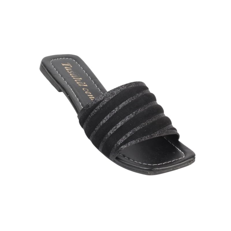 Generic - سليبر حريمى فلات جلد فى قماش 780 اسود 38