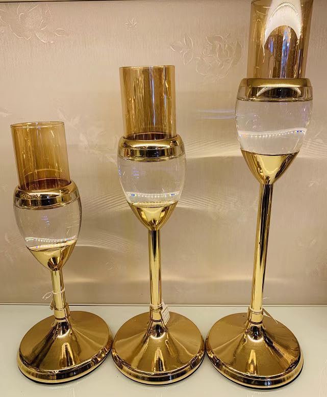 Generic - حامل شموع كريستالي أسطواني طويل 20/30/35 سم شمعدان لديكور المنزل وحفلات الزفاف والذكرى السنوية وأعياد الميلاد والانتقال لمنزل جديد من بيود، 3 قطع، ذهبي