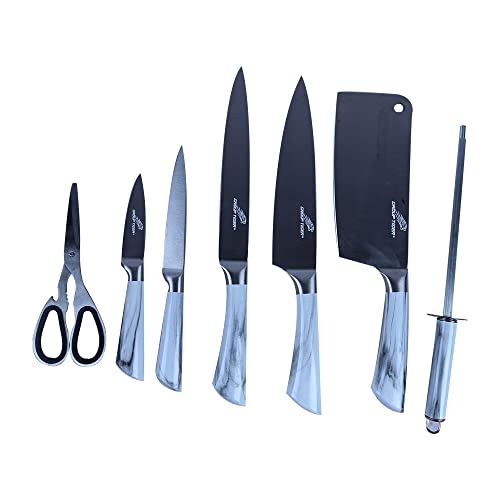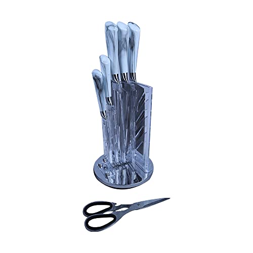 Generic - طقم سكينة ستاند بيد رخامي ابيض 8قطع - 134
