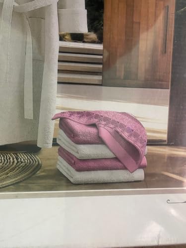 Generic - روب حمام قطن _ طقم من 8 قطعه _ 2 روب _ 2 حزام _ 4 فوطه مطرزه من القطن عالي الجوده _ مناسب للعروسه والهدايا _ مغلف بعلبه من الكرتون بشكل راقي