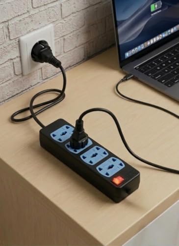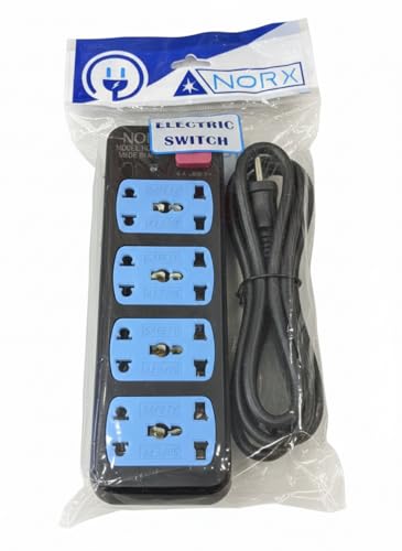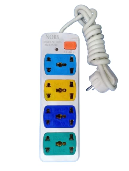 Generic - مشترك كهرباء 8 منافذ ( 4 عالمى + 4 ثنائى ) و مفتاح تشغيل و فصل و لمبة بيان مضيئة ، سلك 2 متر من نوركس (8 منفذ)