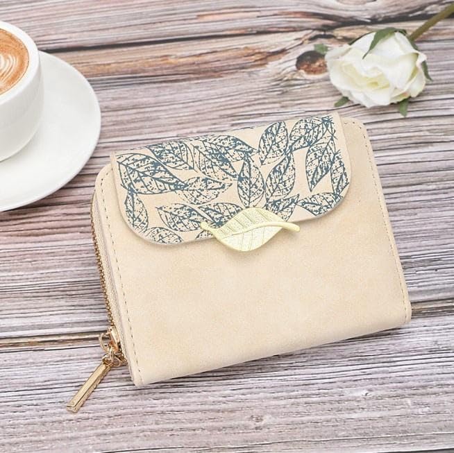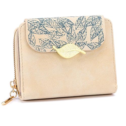 Generic - محفظة نسائية من الجلد PU بتصميم عصري، باللون البيج مع فتحات متعددة للبطاقات ونافذة للهوية