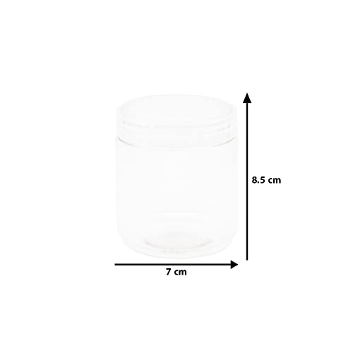 Artistic - 8 قطعة برطمان بلاستيك ابيض شفاف حجم 300 ملي- قطر 7 سنتي - غطاء لون مشرشر و طبه - فوارغ عالي الجودة وصحي لاعادة التعبئة تخزين - من فنوني