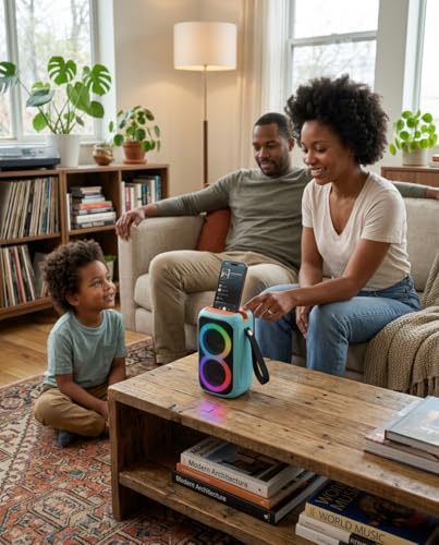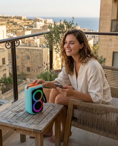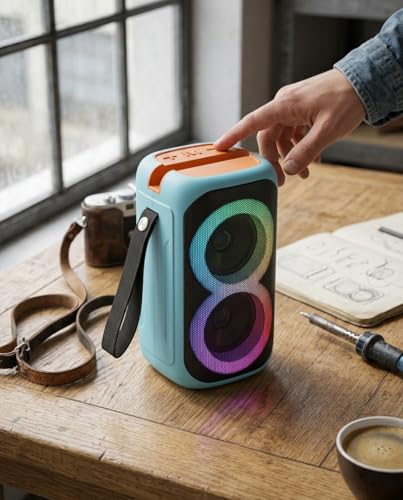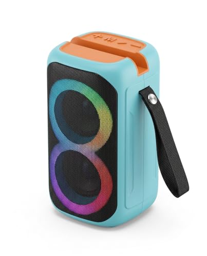 Generic - سبيكر بلوتوث لاسلكي محمول مع حامل للموبايل وقوة صوت 8 واط واضاءة RGB ملونة وبطارية 1200 ملي امبير تدوم طويلا مثالي للحفلات والرحلات والمنزل - موديل JL23 (ازرق)