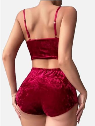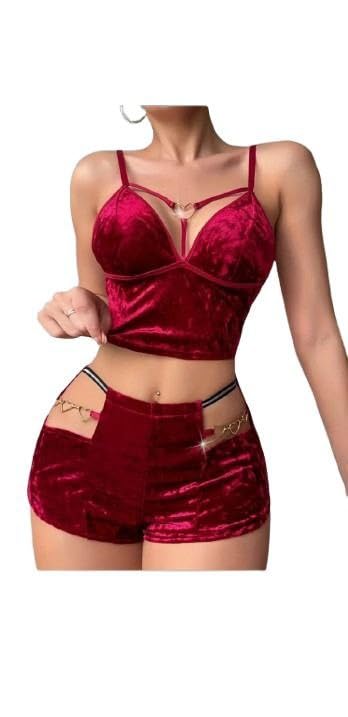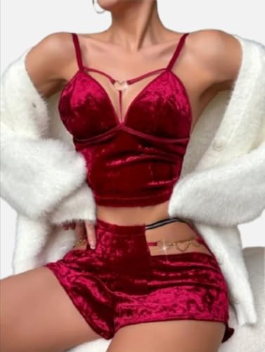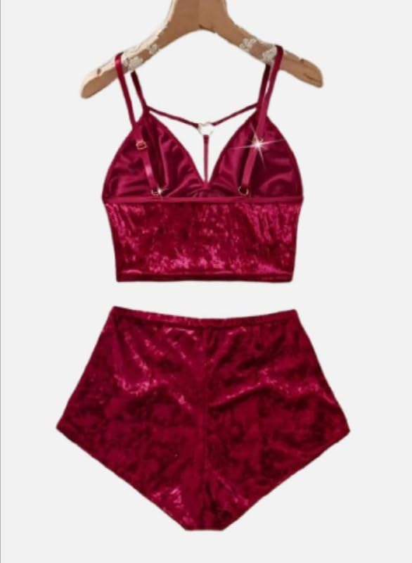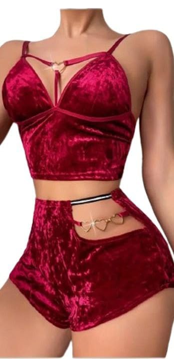 هنادي - بيجامة هوت شورت قطيفة مع سوار قلوب – ساوان حتى 80 كيلو – HN 9011