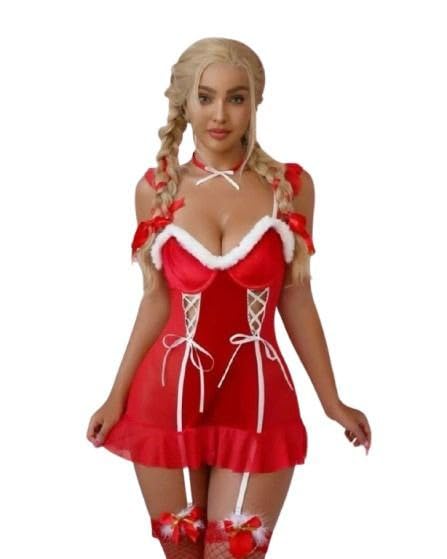 هنادي - قميص نوم تنكرى الكريسماس بخامة قطيفه ناعمة – مقاس وان سايز يناسب حتى 80 كيلو – HN 9041، مقاس واحد