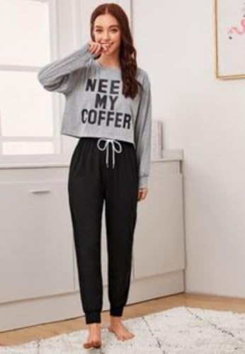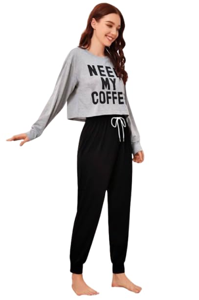 Generic - بيجامه حريمي خريفي - قطن سينجل ليكرا- بنطلون شروال - مقاس بيج سايز من 85 حتى 110 كيلو - رمادى فاتح- موديل رقم #: 406-244