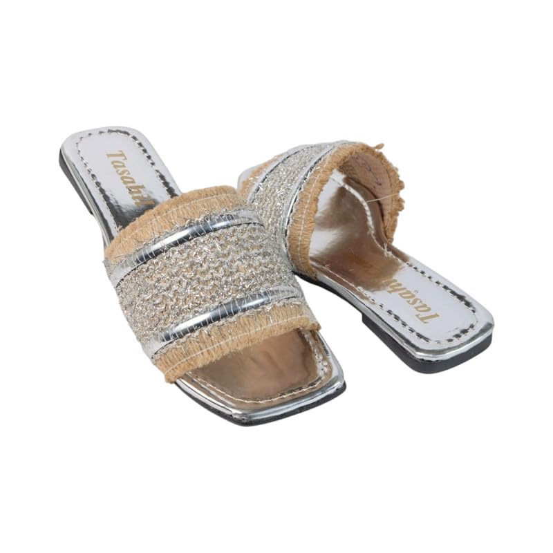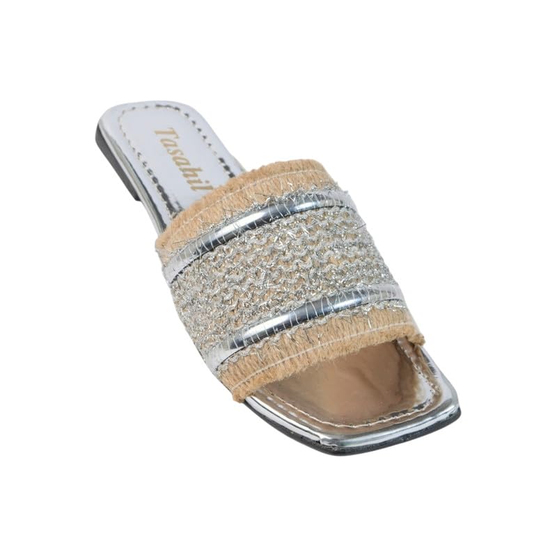 Generic - سليبر حريمى فلات جلد 868 فضى 40