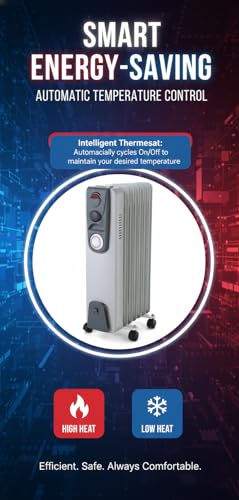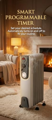 Generic - دفاية زيت من 9 ريشة - 2000 وات -مستويان للحراره- مؤقت تايمر- ترموستات - رمادى فاتح
