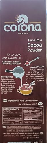 - قابل لانتهاء الصلاحية: نعم، قوام الطعام: مسحوق، التعبئة: صندوق، العلامة التجارية: كورونا، النوع: شوكولاتة وحلوى، النكهة: شوكولاتة، وزن المنتج: 90 جرام