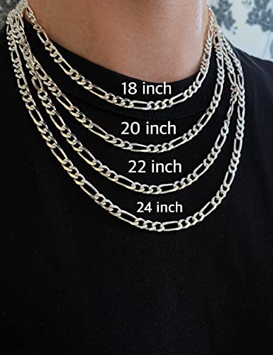 Waitsoul - سلسلة فيجارو حريمي ورجالي من الفضة الاسترلينية عيار 925، بمشبك لوبستر، سلسلة بحلقات فيجارو بقطع ألماس 3/4/5 ملم، 41-76 سم