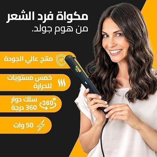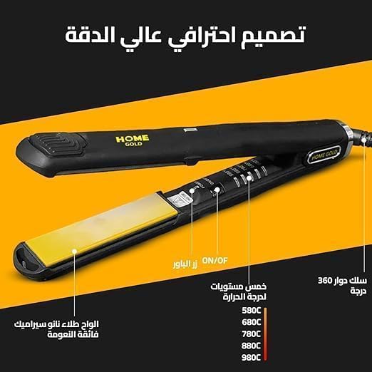 Generic - مكواة فرد الشعر المنزلية جولد، تسخين احترافي 980 درجة فهرنهايت، طلاء نانو سيراميك، وتقنية أيونية لتصفيف ناعم وسهل - (أسود HG-803)