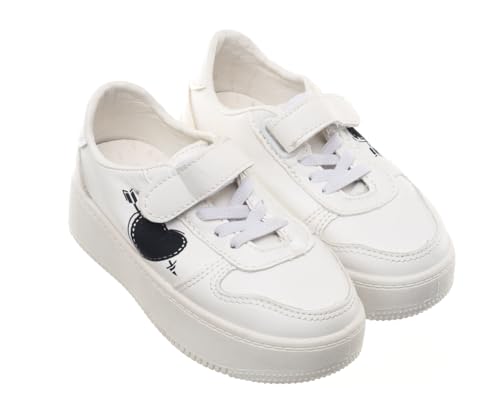 99.99 - حذاء رياضي جلد للاطفال 99.99 مع اغلاق بلاصق فيلكرو ونعل سميك (ابيض/اسود، 31)