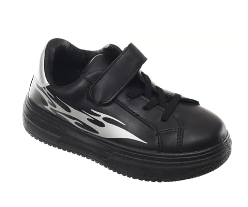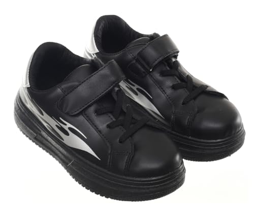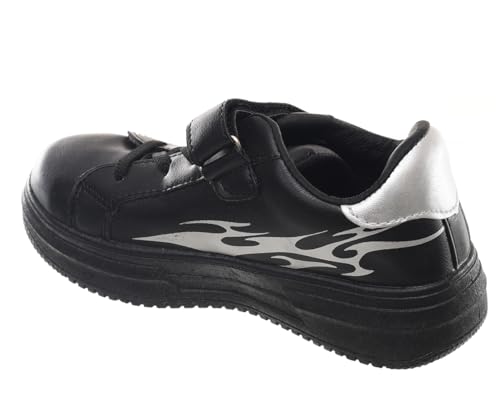 99.99 - حذاء رياضي جلد للاطفال مع اغلاق بلاصق فيلكرو من 99.99 (اسود/ رمادي، مقاس 34)