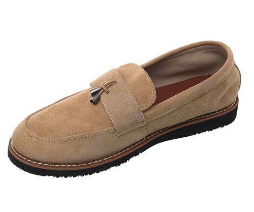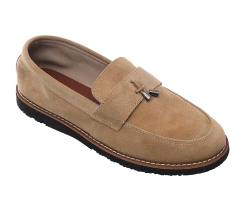 99.99 - حذاء شمواه سهل الارتداء للرجال مزين بقطعة معدنية أمامية ونعل مطاطي من 99.99، بيج، EU 43
