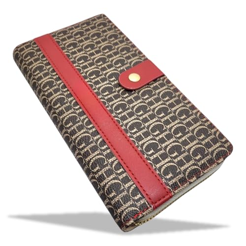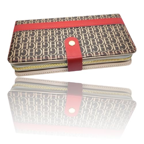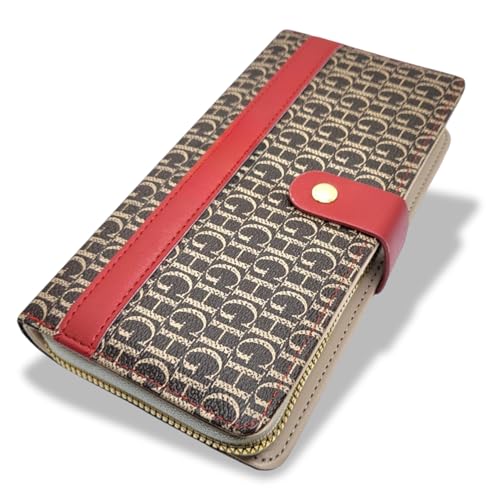 Generic - محفظة نسائية من الجلد الصناعي بتصميم كوري عصري، باللون الأحمر، متعددة الأقسام مع حامل للنقود والصور