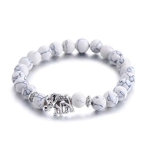Other - سوار من الحجر الرخامي الابيض مع فيل صغير، للجنسين