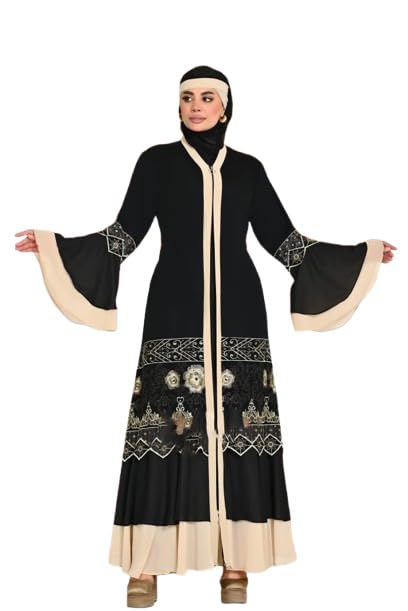 GAMAL SONS FOR ABAYA - عبايه الخامه حرير تطريز في شيفون بحزام وسوسته مقاسات من XL الي 4XL تلبيس من 80 كيلو الي 120 كيلو GAMAL SONS FOR ABAYA GS-575-34041-Parent