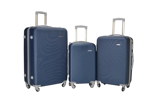 Generic - مجموعة شنط سفر بعجلات مصنوعة من بلاستيك ايه بي اس (كحلي)