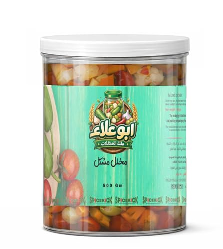 Spicekick - مخللات أبو علاء مخلل مشكل 500 جرام – Spicekick مخللات طبيعية للأطباق المتوسطية والمقبلات والسلطات والسندويشات والوجبات الخفيفة