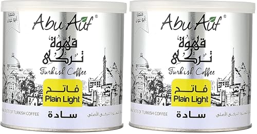 Abu Auf - قهوة تركية خفيفة التحميص سادة من أبو عوف، 200 جم، عبوة معدن، عبوة من قطعتين