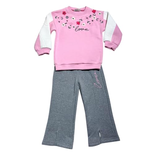 Access - طقم بيجامة للبنات مكون من قطعتين مكون من سويت شيرت باكمام طويلة وبنطلون مطرز بالزهور (عبوة من قطعة واحدة)
