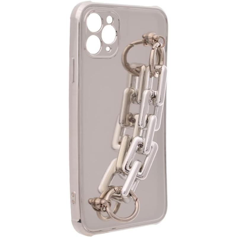 generic - جراب حماية خلفي من السيليكون بسوار يد من البلاستيك للآيفون 11 برو ماكس من متجر الاكسسوارات - لون فضي
