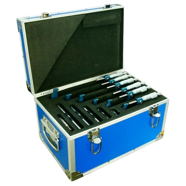 Accud - مجموعة ميكرومتر رقمي خارجي تغطي مدى قياس من 0 إلى 100 ملم، بدقة تدرج 0.01 ملم من اكود، لون أزرق، 4 قطع، موديل 321-004-04