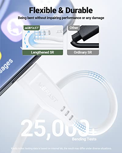 ACEFAST - كابل بيانات USB نوع سي C3-03 من ايس فاست، لون ابيض، الهواتف المحمولة، سامسونج، هواوي، شاومي، اوبو