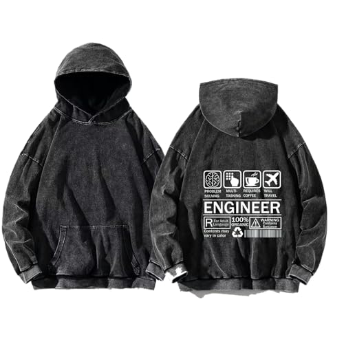 Generic - acid wash gray oversize Youth hoodie back art over size TEXT job work 67 engineer