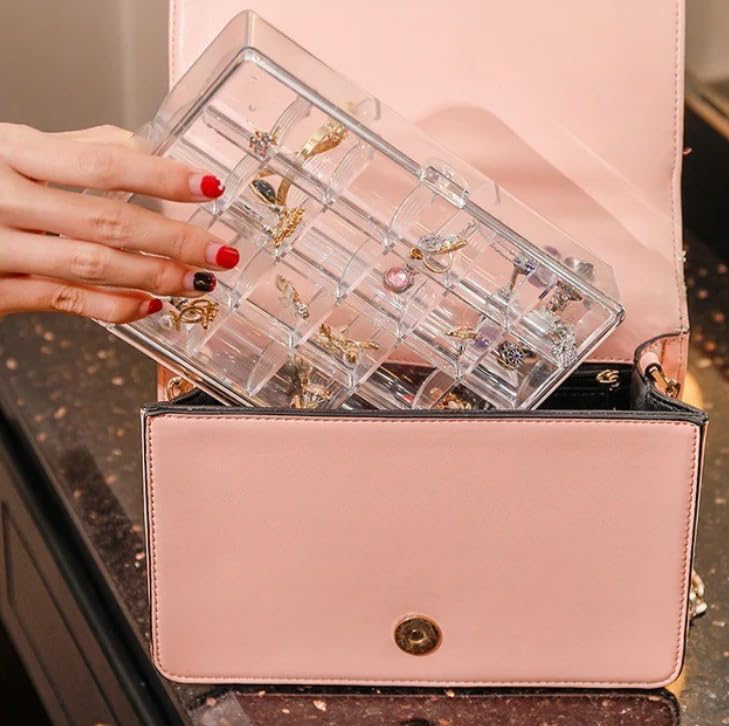 - منظم مجوهرات محمول: يوفر هذا المنظم المصنوع من الأكريليك المدمج ذو المستوى الواحد تخزينًا آمنًا لمجوهراتك أثناء السفر أو حملها في حقيبة اليد.